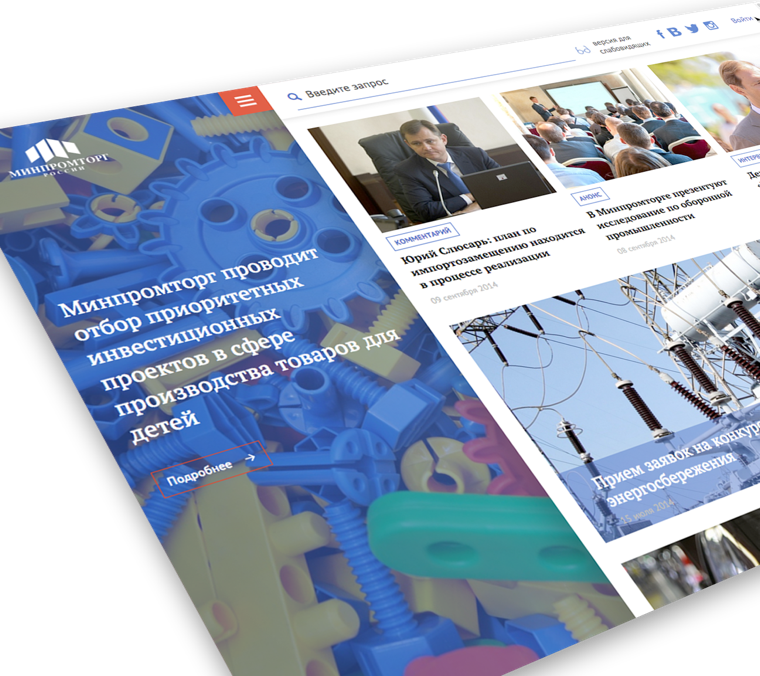 The redesign of the official website of the Ministry of Trade and Industry. A new design concept meets all modern requirements.