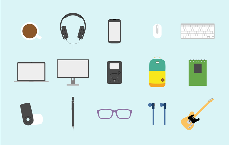 A set of things, which I use every day. I created icons and added the animation to them for the demonstration.